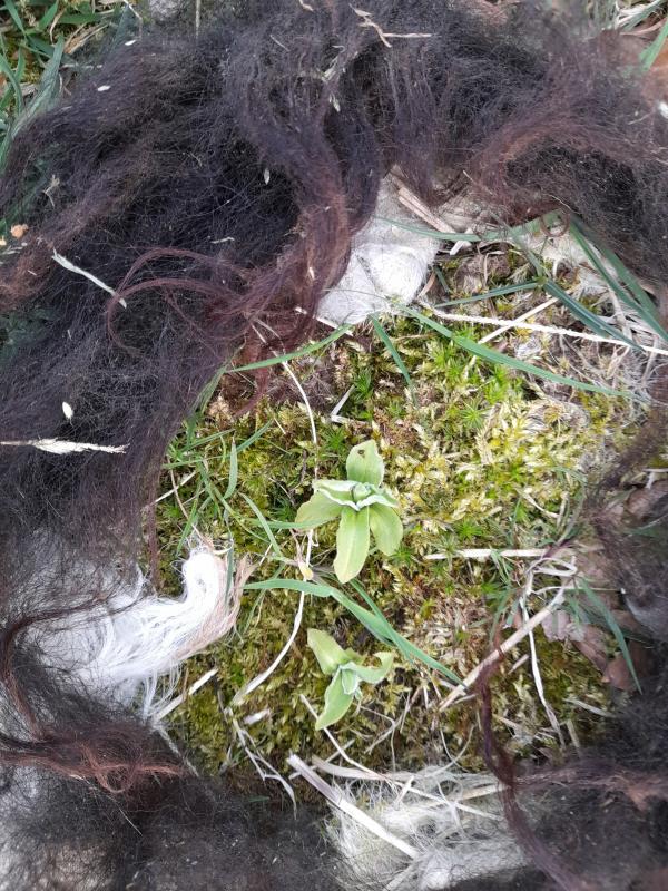 Dann weiter zur Arnika. Schneckenschutz gesetzt. Keine Minute zu früh. Erstes Loch schon drin