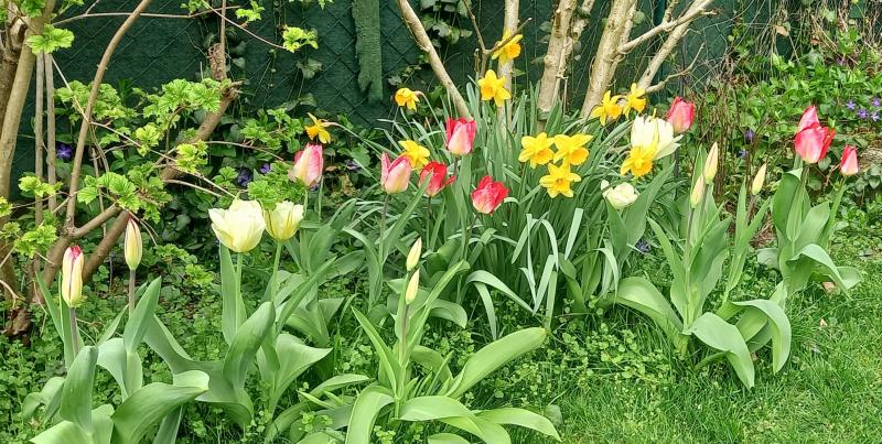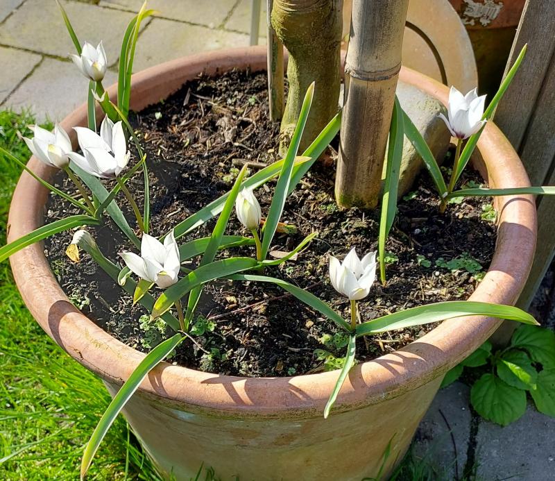 Hier sind meine Sylvestris. Stehen auch im Kübel mit einem Apfel Hochstämmchen. Alle Zwiebeln sind gekommen!