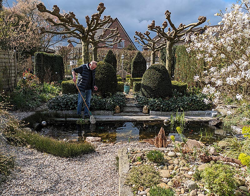 Wir haben aber die klassische Aufgabenteilung im Garten: Für alles, was mit Maschinen gemacht wird, ist er zuständig - also Hecken- und Baumschnitt.Auch die Teichpflege übernimmt er. Pflanzen, Gießen und Unkrautzupfen ist meine Aufgabe.