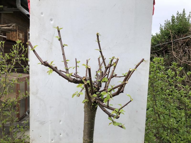 Unser Mandelbäumchen ist mindestens 5 Jahre alt, diesmal hat Sohn2 geschnitten. Der Austrieb vom Vorjahr war wg super Regenverteilung rekordverdächtig lang, irgenwo zwischen 80cm und 1m, alles gesund.