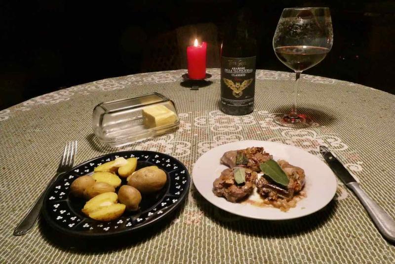 Da ich kein gutes Lamm ergattern konnte, gab es Kalslbeber venezianisch mit Zwergelkartoffeln gedämpft mit Butter: