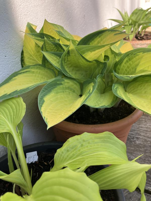 Jule, du hast ja sehr viele schöne Hostas in Töpfen. :D