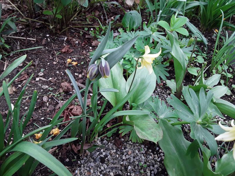 Fritillaria acmopetala ist neu im Garten. Ich habe angeblich 10 Zwiebeln gesteckt. Zu finden ist nur eine blühende Pflanzen und drumherum auch nichts an Blättern. ???