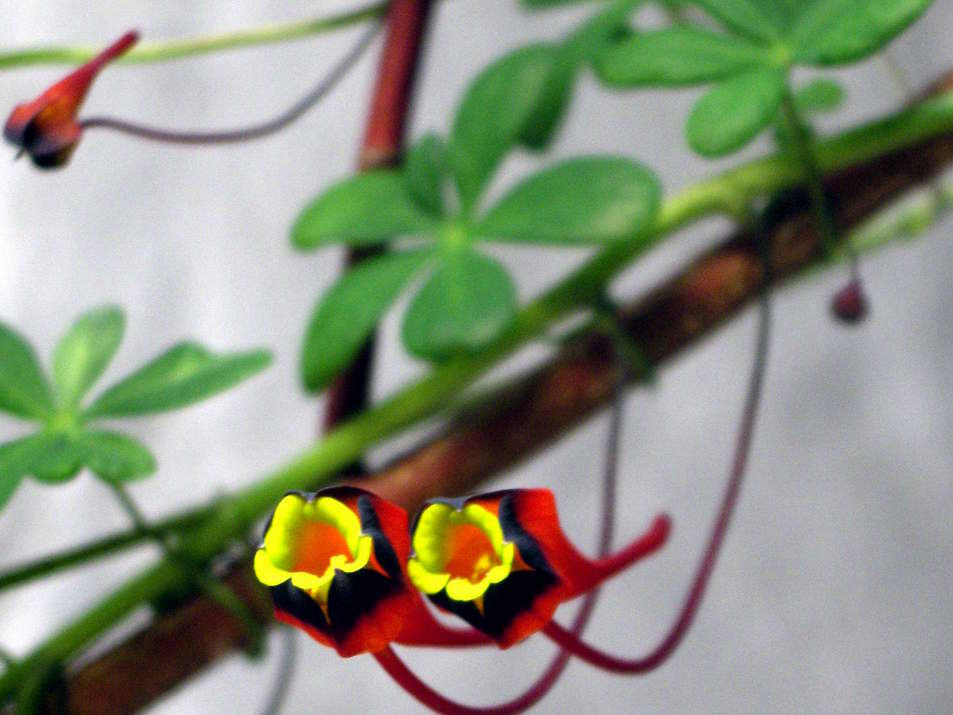 Die ersten Blüten von Tropaeolum tricolor gehen auf. Ganzkörperfoto folgt in einigen Wochen zur Vollblüte.