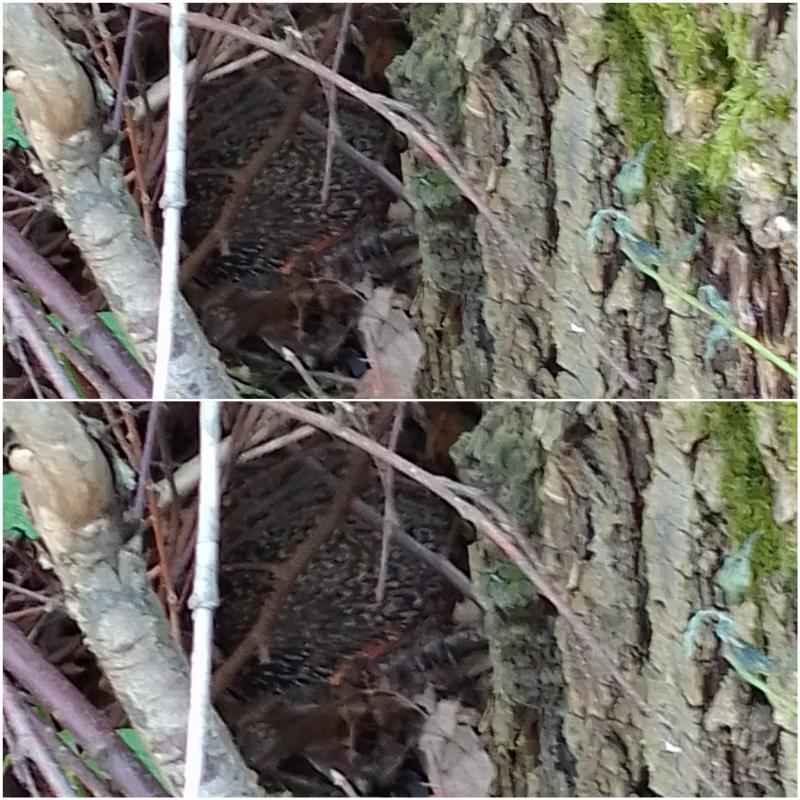 Meinen eigenen Totholzstapel würde ich seit mehreren Jahren gerne umräumen, untenrum etwas dichter packen, damit ich Platz gewinne für neues Material. Geht aber nicht, er ist bewohnt. Ganzjährig - im Frühjahr finde ich jedes Mal kugelige "Löcher" im trockenen Laub, das ich im Herbst an den Stapelfuß kippe: Igels nutzen das Bettdecken-Angebot für Winterschlafnester. Und ziemlich früh im Jahr hüpfen dort Heckenbraunellen und Rotkehlchen rum... Gut möglich, dass Frau Igel dort auch Junge aufzieht; nachgeguckt habe ich aber nie, will ja nicht stören. Die Stachelviecher karussellen jedenfalls von April bis Sommer im Garten (an anderer Stelle), und es tauchen etwas später im Jahr auch regelmäßig Jungigel auf.