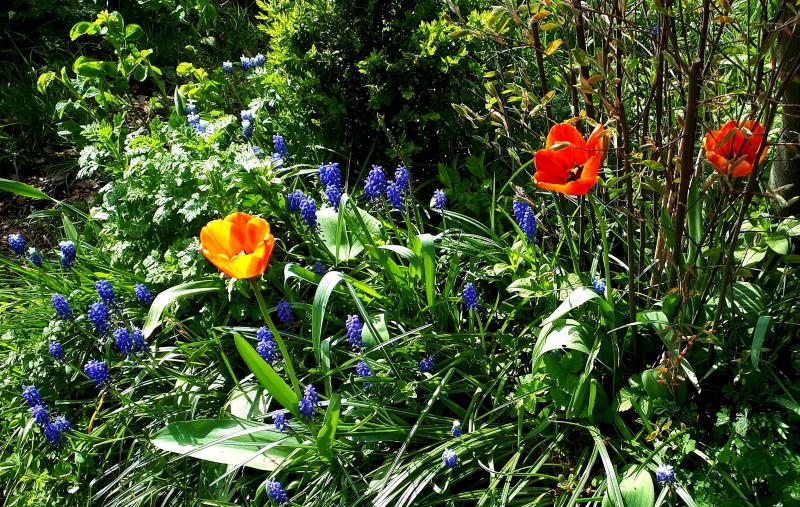 Im rotorange orientierten Beet blühen die wenigen Muvota (syn Slawa) die bisher dem Tulpenfeuer entgangen sind. Diese stehen etwas höher und dadurch trockener, vielleicht macht das schon den Unterschied.