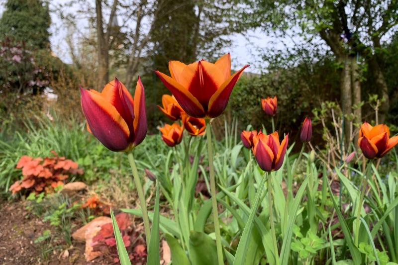 Im rotorange orientierten Beet blühen die wenigen Muvota (syn Slawa) die bisher dem Tulpenfeuer entgangen sind. Diese stehen etwas höher und dadurch trockener, vielleicht macht das schon den Unterschied.