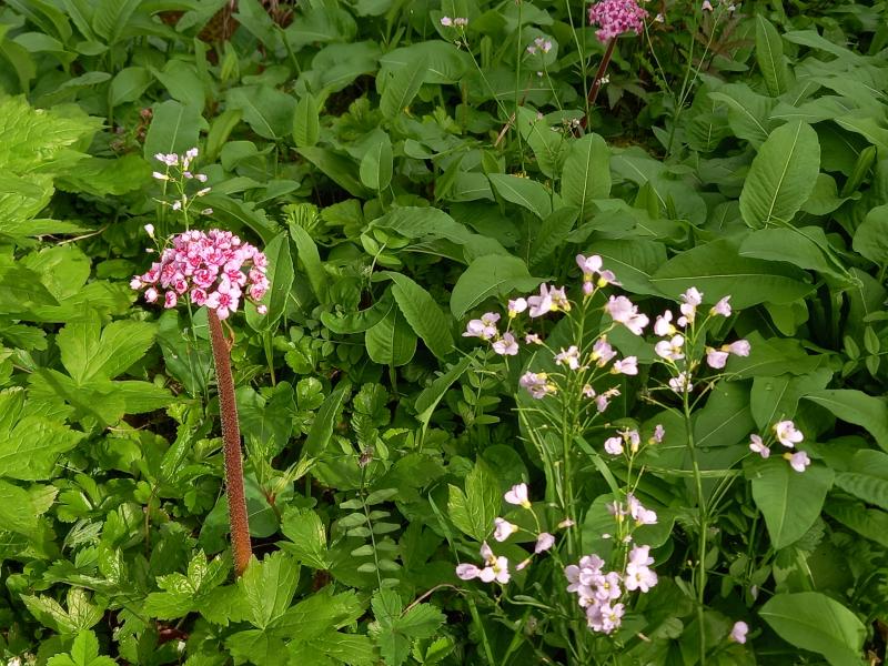 Besonders fiel mir heute die Kombination Wiesenschaumkraut mit Darmera auf.