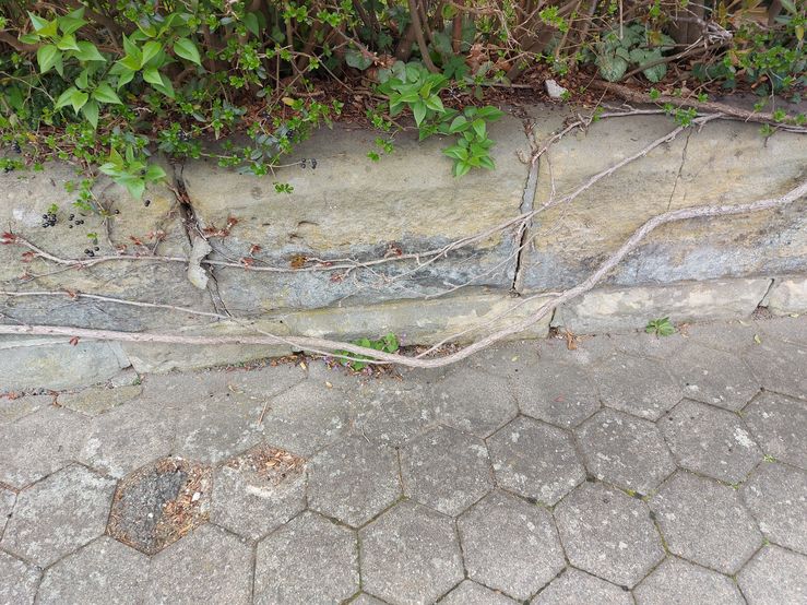 Ich vermute das die Mutter mit einem Erdrest als Samenkorn dorthin geraten ist, denn in meinem alten Garten gab es die einmal und ich entsorge gern kleine Erdreste in Nachbarhecken.