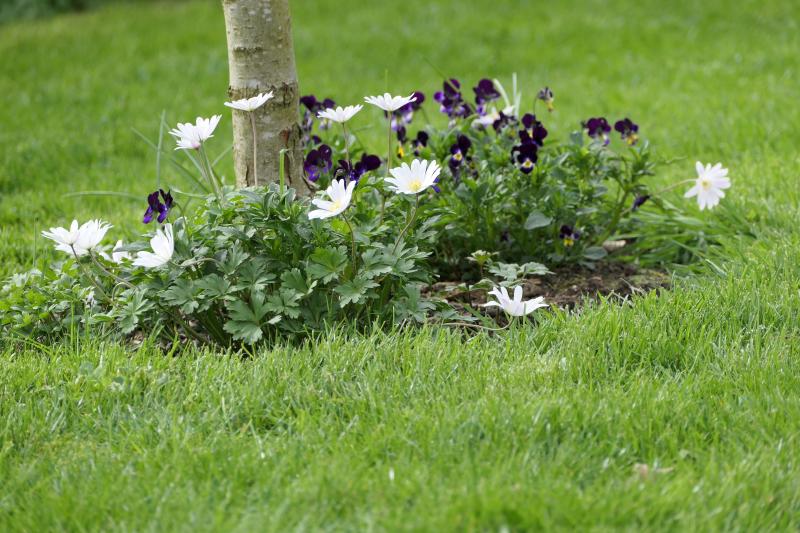 Die weißen Anemone blanda habe ich auf die Baumscheibe gepflanzt, die Hornveilchensämlinge haben sich selbst dazu gesellt. Harmonisch, finde ich: