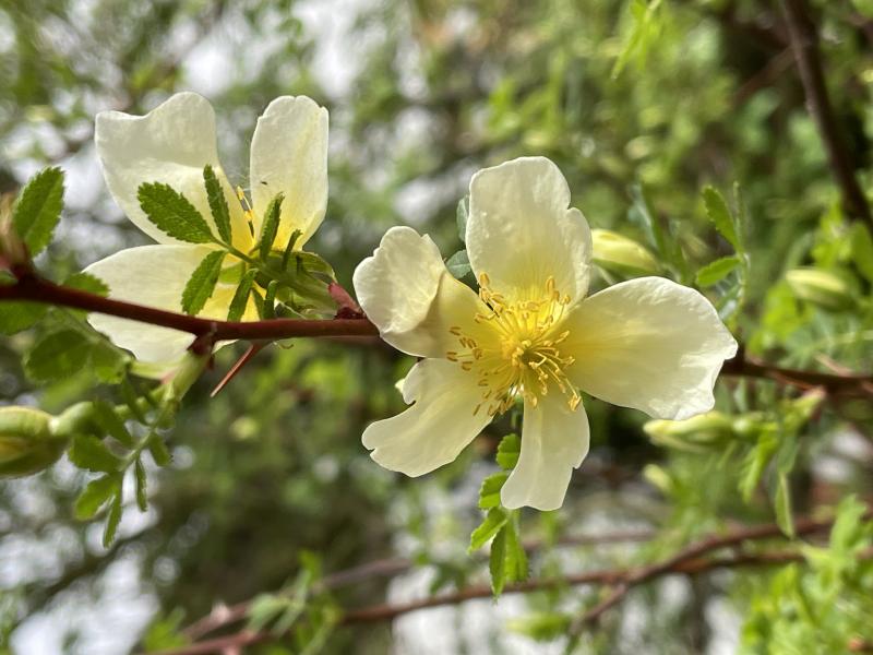 Meine Frage: mich begeistert die Weihrauchrose (Rosa primula), die sich an einem recht kiesigen Standort in etwa acht Jahren zu einem bis ca. 3 m hohen Strauch entwickelt hat. Schöne frühe Blüte und vor allem der starke Weihrauchduft des Laubs (Terrassennähe). Ich hätte die Art gerne vermehrt (im Handel finde ich sie aktuell nicht, auch scheinen da ja verschiedene ähnliche Arten bzw. Sorten mit mehr oder weniger duftigem Laub in der Szene unterwegs zu sein).