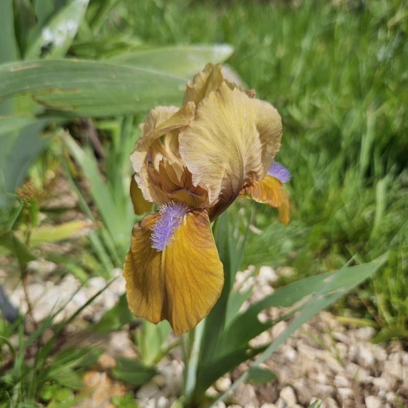 1 Iris, ein kleiner blüht! Namen auf dem Stein davor verblasst.