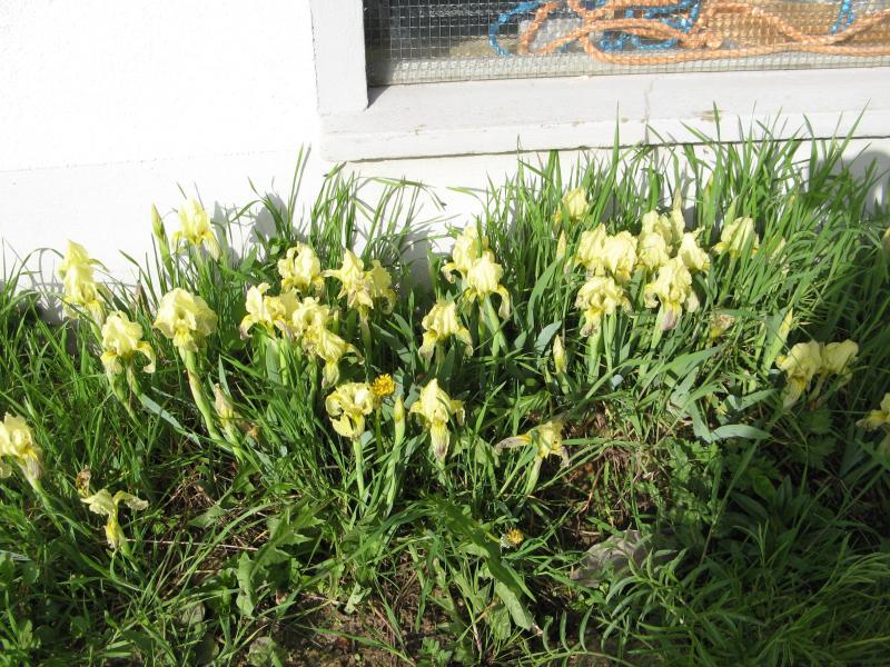 In dieses Mäuerchen an der Einfahrt hatte ich lauter verschollen geglaubte Sorten gesetzt, deren Rhizome in den Staudenbeeten untergingen.