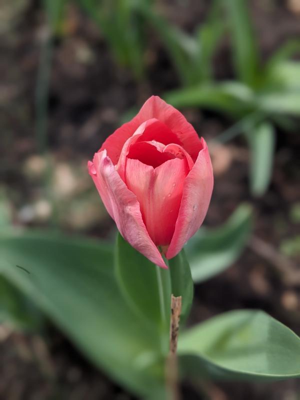 Diese hier hab ich im letzten Jahr als rosa Tulpen gekauft. Jetzt wächst sie fröhlich, aber in einem (eher dezenten) Rot!