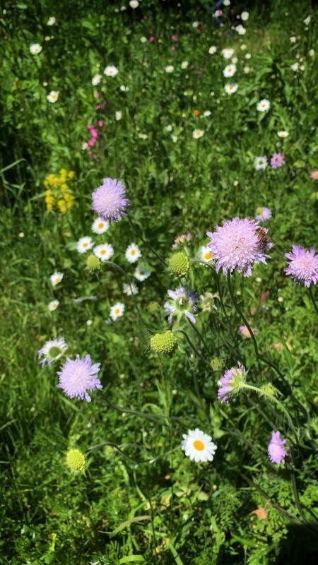 Ja, campanula persicifolia funktioniert hier auch gut in den Beeten und versamt sich auch. Sowohl Campanula rotundifolia als auch Campanula patula tun sich hier bei mir extrem schwer, obwohl ich sie aus den Wiesen meiner Kindheit kenne, die nur ca. 30 km von hier entfernt liegen. Woran das liegt weiß ich nicht. Zum Glück hat sich Campanula trachelium jetzt im Saum und in anderen Beeten etablieren können, Campanula spp. sind im Wildbienengarten ja unverzichtbar. Daucus carota wächst hier sowohl in den Wiesenflächen als auch auf dem Blackboxhang, 25 pollennutzende Wildbienen, davon 4 oligolektisch :o :o!