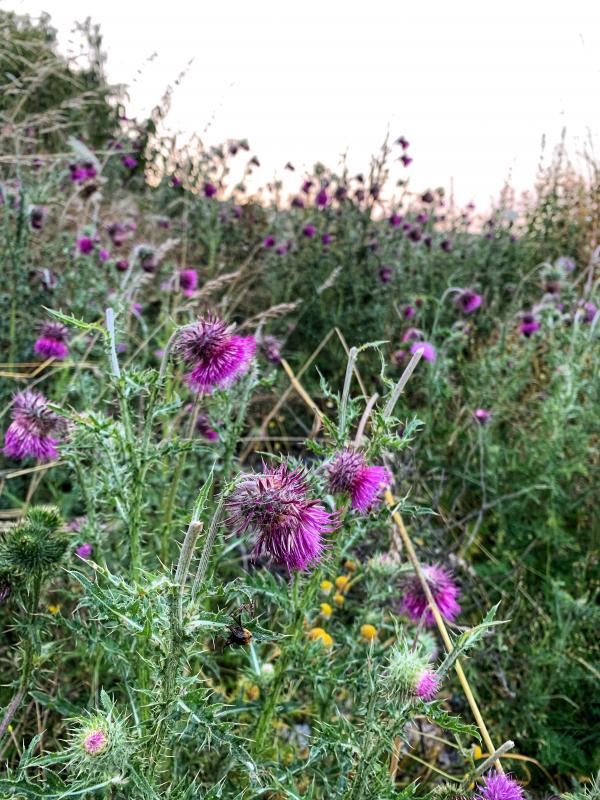 Knautia arvensis hat sich überbordend ausgesamt (hoffentlich klappt das in der Pachtwiese vorn auch noch), Pollen zur Fortpflanzung für "meine" Andrena hattorfiana, ich liebe diese oligolektische Sandbiene einfach und für weitere 13 Wildbienenarten, 3 davon oligolektisch. Hypericum perforatum, 16 pollennutzende Wildbienenarten. Die Pflanze ist von daher besonders interessant, als dass sie nur Pollen produziert, keinen Nektar, jede Biene daran sollte also ein Weibchen sein 8). Berteroa incana, 12 Wildbienen und mehrere nektartrinkende Tagfalter. Tanacetum vulgare, 21 pollennutzende Wildbienen, 7 davon oligolektisch.