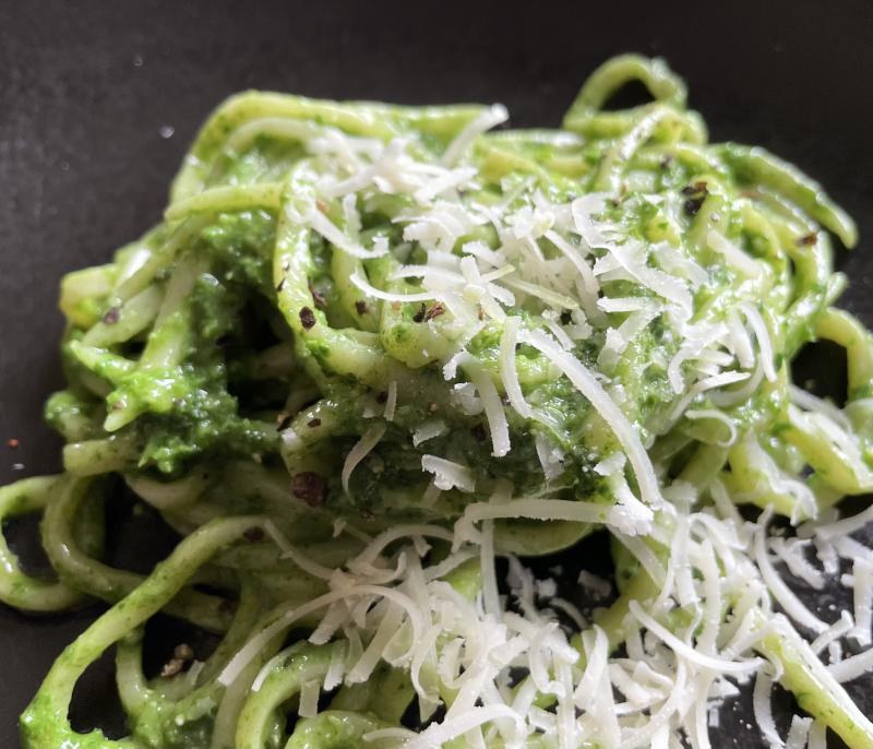 Und da die Gäste über nacht blieben und keine Anstalten machten wieder nach Hause zu fahren (wir haben uns sehr gefreut darüber!), gab es heute mittag nochmals Sardinenfilets aus der Pfanne vorweg, dann einen kleinen Pastagang Spaghetti a la chitarra mit Brennnesselpesto (schnell frisch geerntet) ... ;)