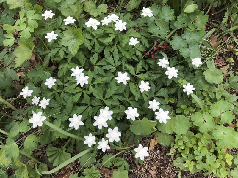 Anemone nemoros 'Vestal' blüht auch hier - als die letzte der Buschwindröschen für dieses Frühjahr.