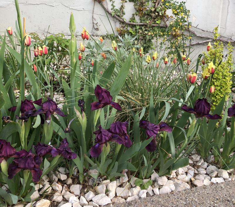 Hausgeist, wieder einmal beeindruckend schöne Beete. Und Konstantinas kleine Iris ist entzückend, der Kalksplitt dazu sehr passend.