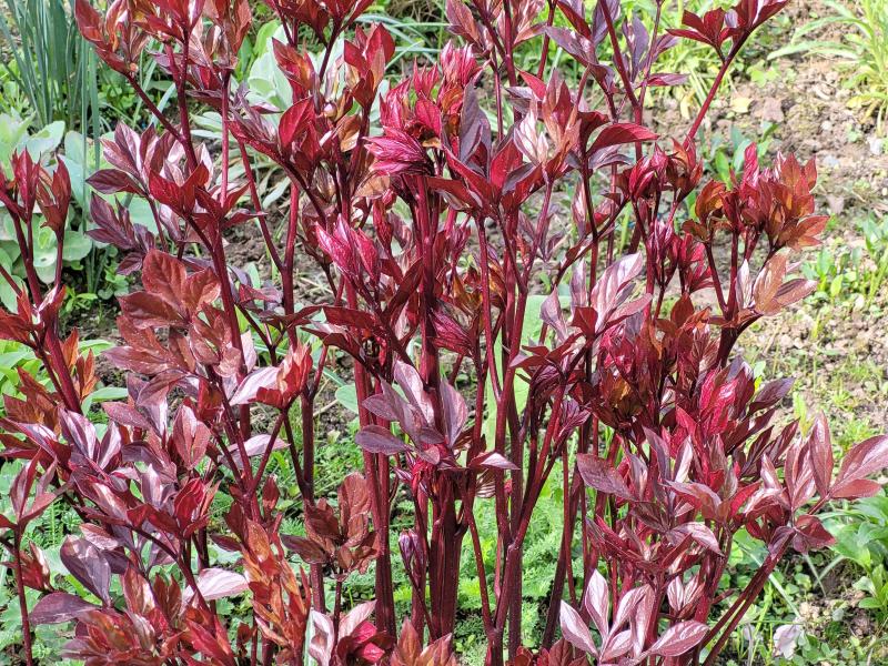 Hier mal der prächtig rote Austrieb von Paeonia lactiflora 'Svarte Petter' :D