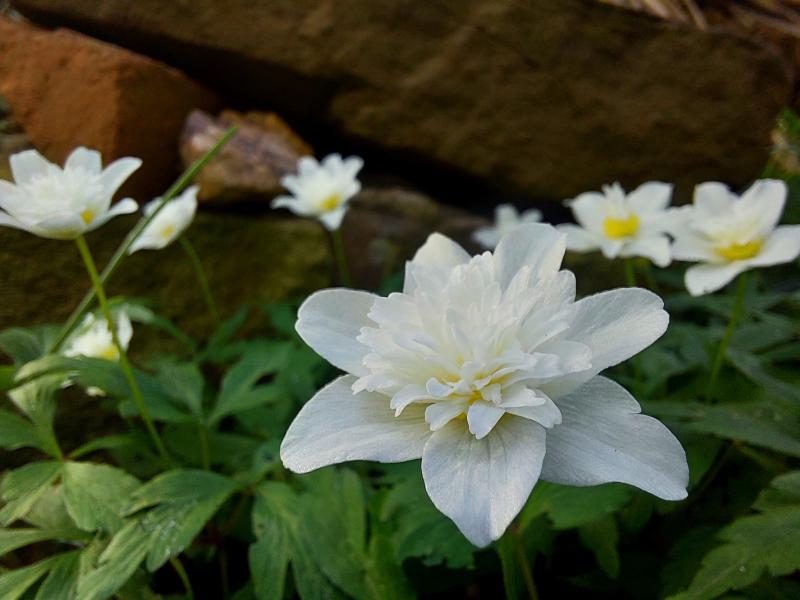 Anemone nemoros 'Vestal' blüht auch hier - als die letzte der Buschwindröschen für dieses Frühjahr.