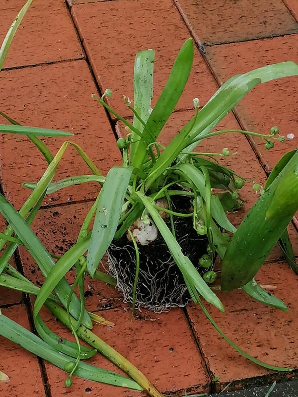 Und 3 Sichelfarne. Deren Ballen waren schon arg trocken, aber ich finde die so schön, die mußten mit. Nach dem Wässern und Eintopfen sehen sie heute schon deutlich besser aus.
