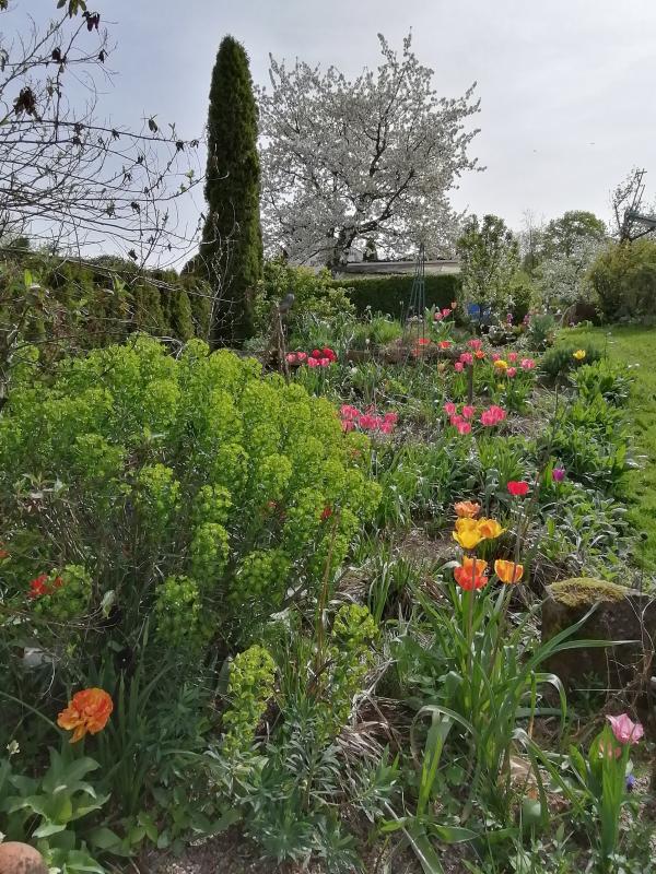 Vor allem Euphorbia characias explodiert, eine große Pflanze habe ich schon entfernt, die saß ganz rechts auf dem Bild.