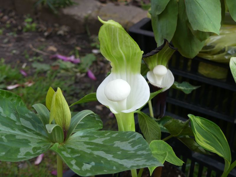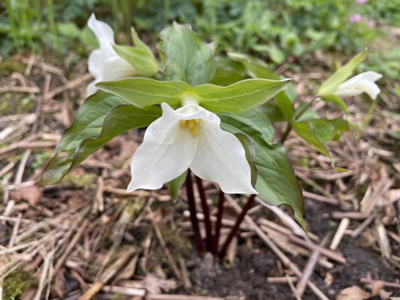 Ein letzte Hybride. Trillium grandiflorum lässt sich noch etwas Zeit mit der Blüte.