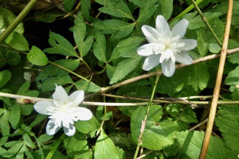 Zwischen meinen verblühten gelben Buschwindröschen, die vom Bach in den Garten gewandert sind, taucht nun plötzlich eine weiße Anemone auf, die wohl kaum wild sein wird. Da ich außer Blue Eyes sonst keine weißen habe, frage ich mich, welche Sorte das ist, und woher sie kommt…