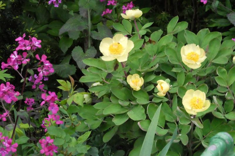 Die Apfelbäume und Strauchpfingstrosen blühen auch, ebenso Rhododendron ´Alena´. Bei uns ist zum Glück kein Frost zu erwarten.