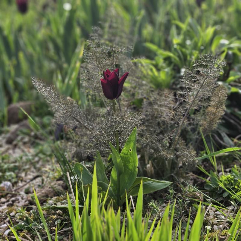 die Triumph Tulpe Havran vor Foeniculum vulgare 'Smokey'