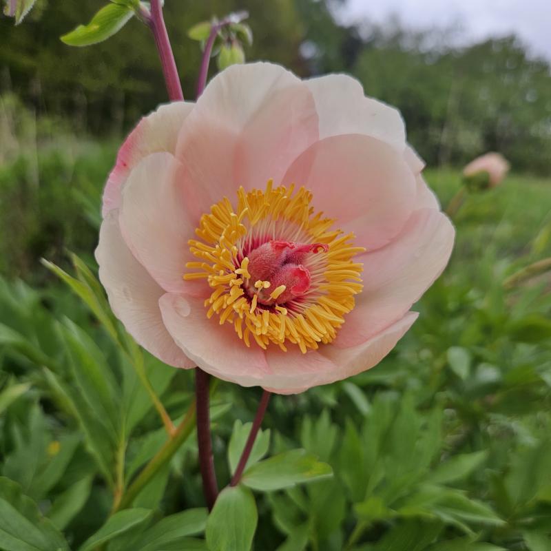 in der Pflanzung für rot und Purpur daneben beginnt die rote Baumpäonie zu blühen. Als Taiyo hatte ich die gekauft.