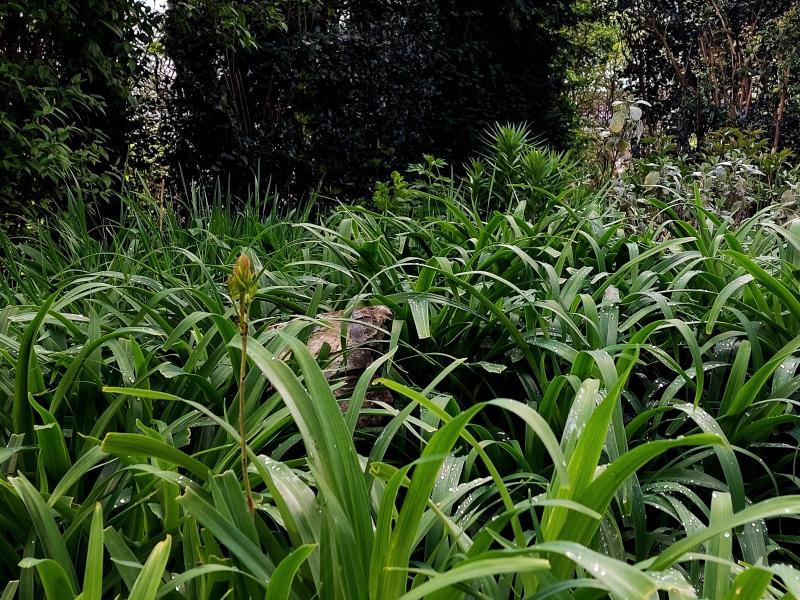 Von hier ein Bild von der dunklen Seite der Macht - Hemerocallis fulva Beet vor Ilex - und Eibenkulisse.