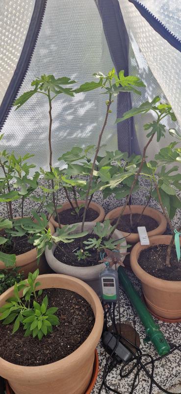 Das Zelt habe ich jetzt den ersten Winter und drinnen schaut´s grad so aus. Steht geschützt auf der Terrasse und bei den Temperaturen in der letzten Zeit waren die Feigen natürlich im Sommermodus ::). Vorne links steht noch meine Inkalilie, die darf in den nächsten Tagen mit rein.