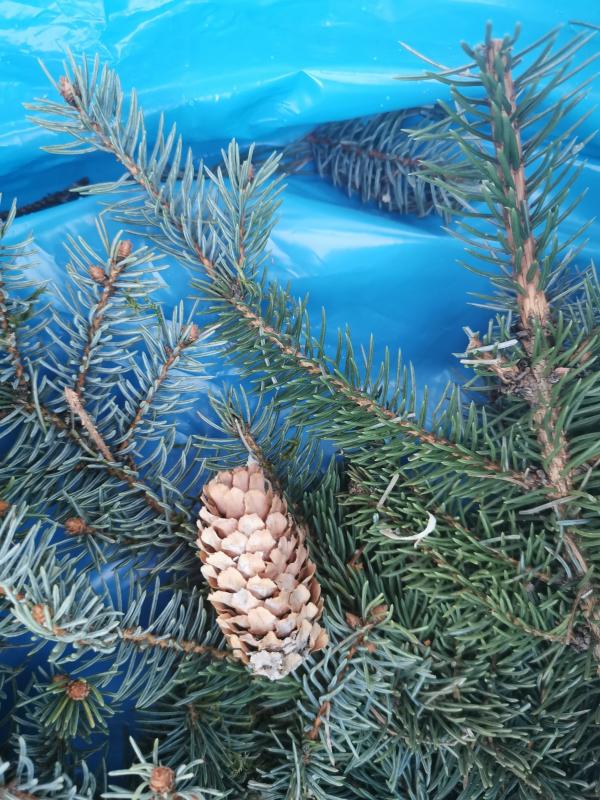 weiß jemand, was das für eine Nadelholz-Art ist? Ich finde im Internet nichts passendes. Die Nadeln haben eine bläuliche Färbung. Meiner Meinung nach sehen die "Blaufichten" auf den Bildern im Internet anders aus, vor allem die Zapfen. Die Nadeln sind, obwohl die abgeschnittenen Zweige bereits seit bestimmt 6 Wochen in einem blauen Sack im Schuppen lagerten, immer noch sehr stehfest und knicken nicht ein.