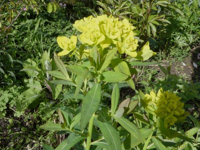 Euphorbia palustris 'Teichlaterne' am trockenen, im Sommer schattigen Standort. Das kommt mir sehr früh vor, wie so vieles in diesem Jahr. Im vergangenen Jahr habe ich die Art in einem ehemaligen Elbe-Altwasser Anfang Juni in voller Blüte gesehen. Aber gut, nahe der Aue und sehr nass erwärmt sich der Boden auch viel langsamer.