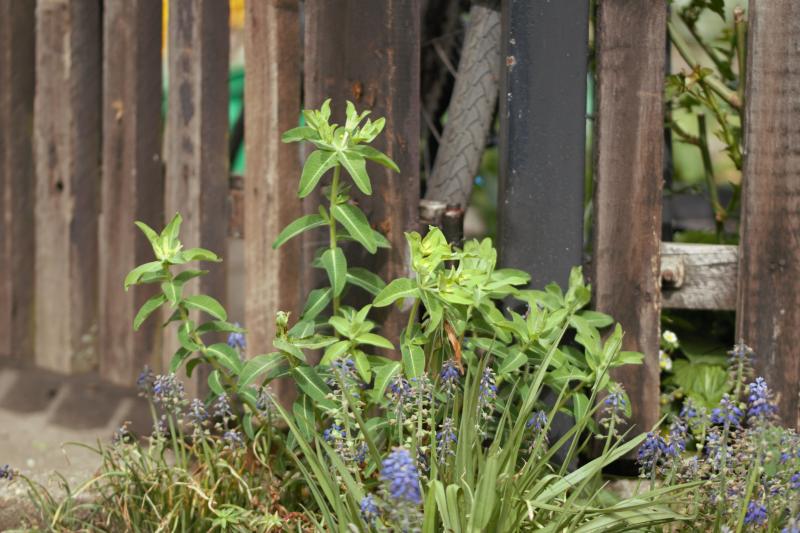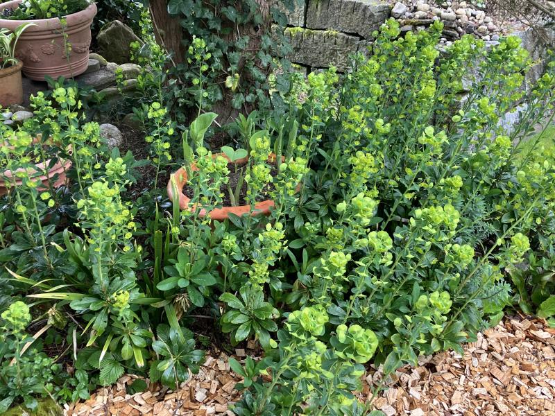 Euphorbia palustris 'Teichlaterne' am trockenen, im Sommer schattigen Standort. Das kommt mir sehr früh vor, wie so vieles in diesem Jahr. Im vergangenen Jahr habe ich die Art in einem ehemaligen Elbe-Altwasser Anfang Juni in voller Blüte gesehen. Aber gut, nahe der Aue und sehr nass erwärmt sich der Boden auch viel langsamer.