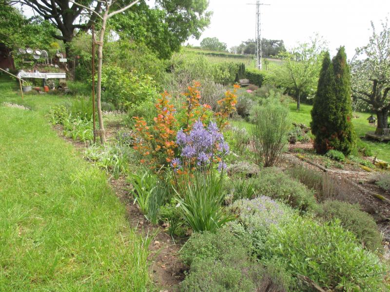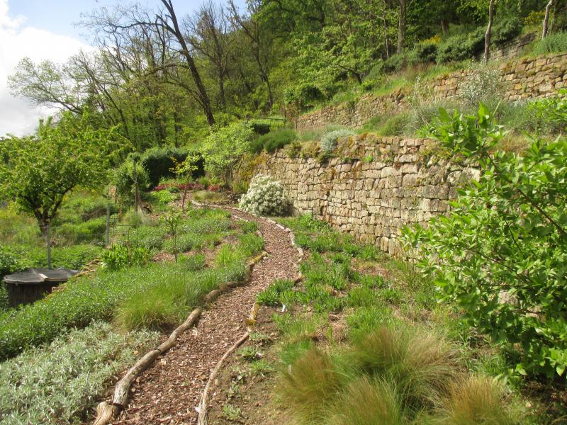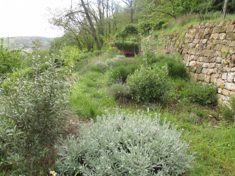 Und die kleine Macchia. Das pinkfarbene ist Aethionema armenum 'Warley Rose'.