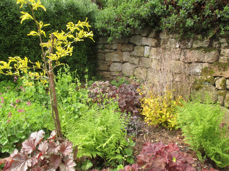 Ich stelle fest, dass ich zu grellen Kontrasten neige - Physocarpus opulifolius 'Amber Jubilee' mit Camassia.