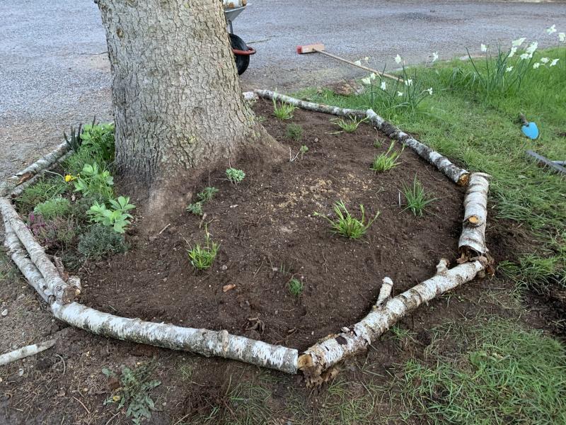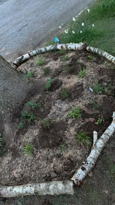 Hab’s jetzt wieder vermengt mit der Erde und der Nadel Streu und eine Umrandung aus Birke die muss ich aber noch gleichförmiger machen leider keine passenden Birken Äste mehr gefunden