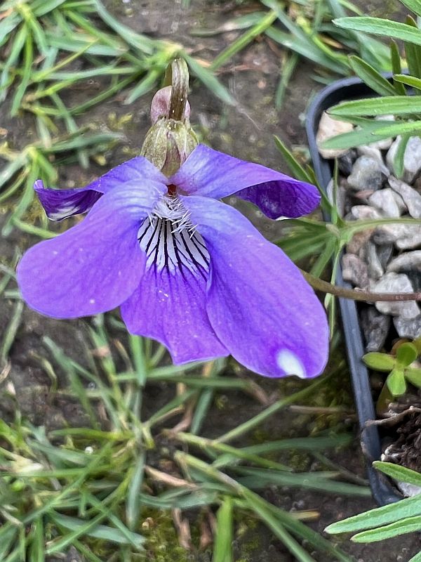 Nachkomme einer viola cornuta, die sich mitten auf die Terrasse gesetzt hat
