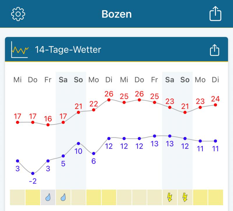 Lokale Bozener Prognose sagt +4 statt -2 voraus. Die nehmen wohl den Ritten oder Mendelpass als nächsten Punkt ;D.