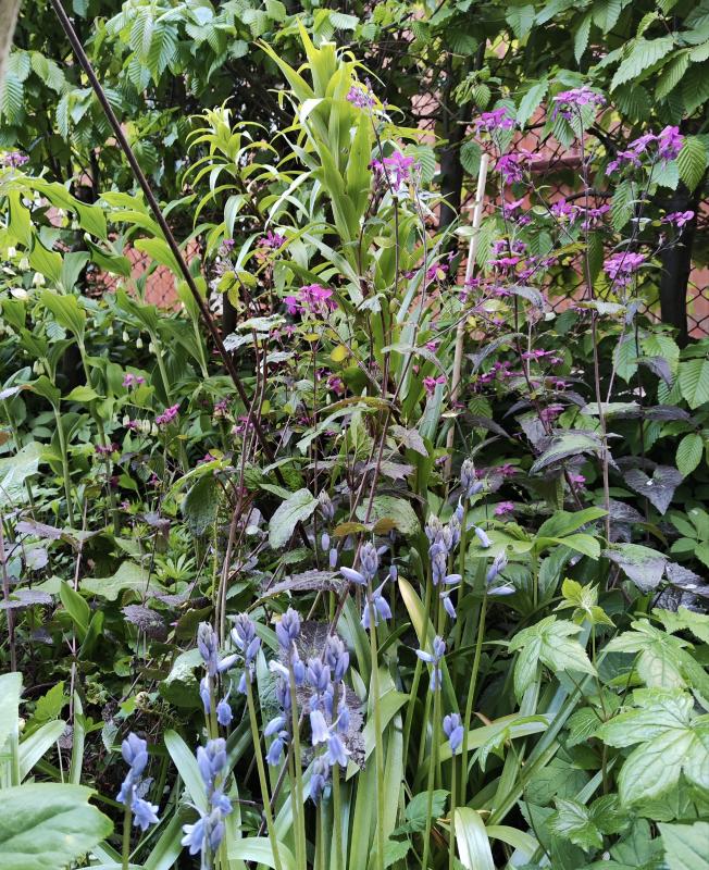 Hier ein lustiges Foto, von spanischen Hasenglöckchen und einem Allium das ich bewußt auch nie dorthin gesetzt hab.