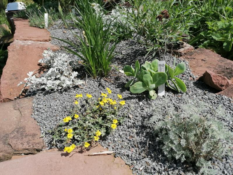 "Golddukaten" heisst die gelbe Pflanze im Kalkbeet.