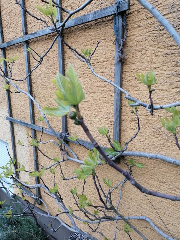 Mediterraneus, eine wärmende Mauer kann ich meiner Feige nicht bieten, nur den Wintergarten im Rücken (Südwestseite). Die anderen guten Plätze sind schon besetzt mit Rosa banksia lutea, Ceanothus und Lagerstroemie. ;D