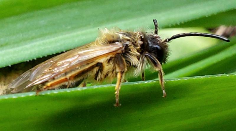 Hier gab es vor zwei Tagen wieder Bienen auf Löwenzahn. Für mich sind die unbestimmbar, mit diesem rostrot-beigen Pelzchen gibt es zig Arten: Für Andrena nitida war das Tier zu klein, es gibt dann noch A. lapponica, helvola, apicata, clarkella, praecox die irgendwie ähnlich sind. Man bräuchte da wirklich einen Bestimmungsschlüssel und zumindest ein Binokular z. B. um die Endfranse in der Farbe bestimmen zu können, und die Scopae- und die Tarsenfarbe :o. Na gut, letztere sieht man am Foto. Es ist zumindest eine Sandbienenart...