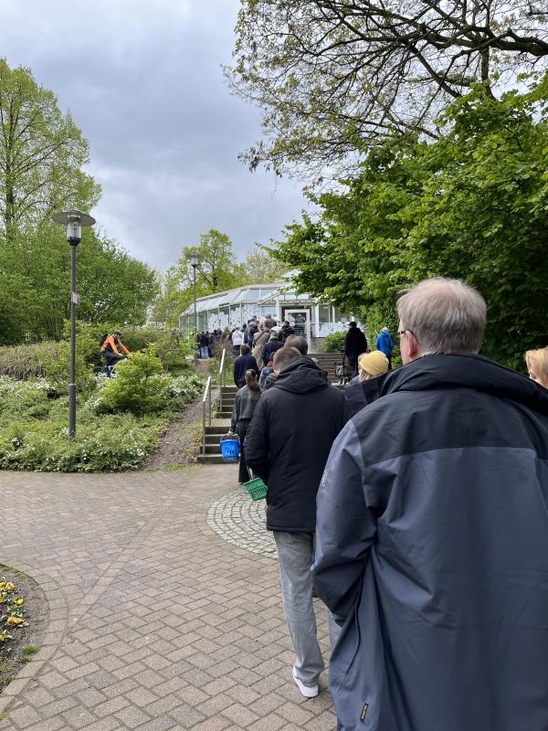 früher war ich auch immer früh da, in den letzten Jahren schaffe ich es immer erst am Nachmittag. Bisher gab es immer genug, bis auf vorletztes Jahr, da war ein extrem warmes Wochenende und der Park auch mit normalen Besuchern extrem voll. Als ich da Samstags um 15 Uhr ankam waren viele Kisten schon leer. Besonders bei Sachen die auch für nicht Gartenverrückte interressant sind, wie Kräuter und Tomatenpflanzen. Was auch immer als erstes weg ist, sind Pflanzen die gerade in Blüte sind. Für Sukkulentenfans lohnt es sich auf jeden Fall. Ich habe das Gefühle, dass es in den letzten Jahren auch immer mehr Stände mit Sukkulenten und Kakteen geworden sind.