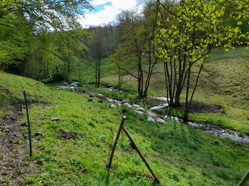 Die große Herde lasse ich heute weiter. Eine Schnucke hat sich dort verletzt. Ich fürchte, sie ist in ein Loch getreten, dass zwischen Grabensteinen klafft. Deren Klauen sind es nämlich nicht