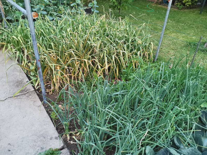 Frühlingszwiebeln sind das einzige andere zwiebelige, was ich anbaue, zuletzt sogar über Winter - erfreut sich bester Gesundheit.