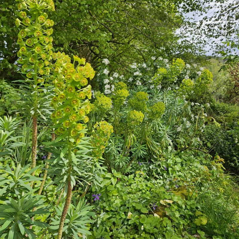 noch mehr Dschungel um die Euphorbia characias und Choisya ternata